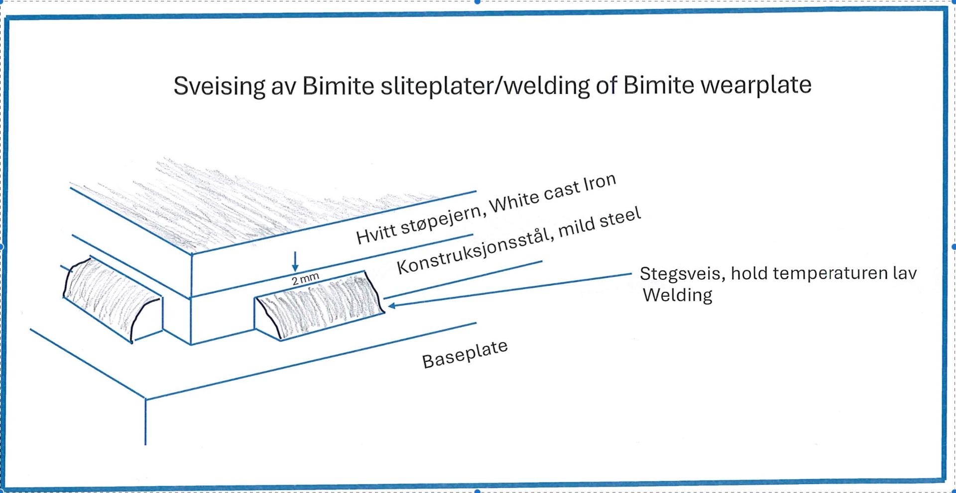 Bimetall sliteplate for skuffer, materialføringer og andre steder der slitasje opptrer.
